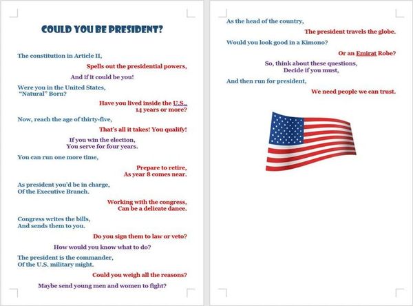 "The kids did have fun, and they certainly did learn about our government. I know that my class kept their poems to continue to partner read because poetry reading improves reading fluency."