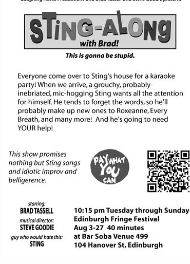 Can Even Sting remember the words. This will be stupid and fun and like nothing you will see again, even if you come twice. Plus, we do some other favorite songs from Proclaimers, Tom Petty, the Who, etc.